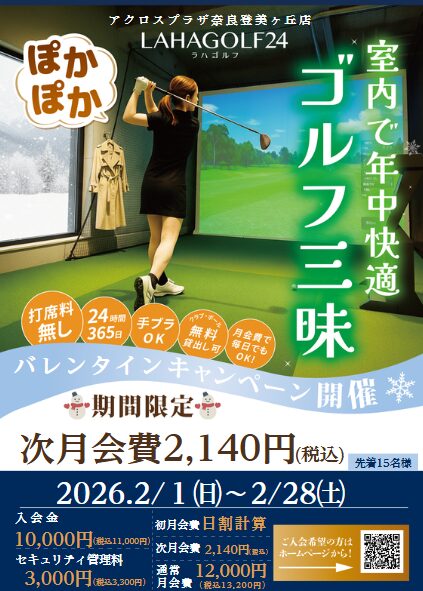 ラハゴルフ24奈良登美ヶ丘店は、奈良市にある無人のインドアゴルフ練習場です。 専用のゴルフシミュレーターをご用意し、初めての方でも女性の方でも安心して練習いただける環境をご用意しています。 24時間いつでも空いているインドアゴルフ施設で打席数も多い店舗となっているため、仕事後や夜中、早朝でも空いているゴルフ練習場をお探しでしたら一度体験にいらしてみませんか? 当店は共用駐車場がありますので、通いやすい店舗となっております。 無人なので基本的にはスタッフもおりません。 受付などで誰かに気を遣うこともなく、思いっきり室内でゴルフの練習が楽しめる環境をこれからも作っていければと思っています。